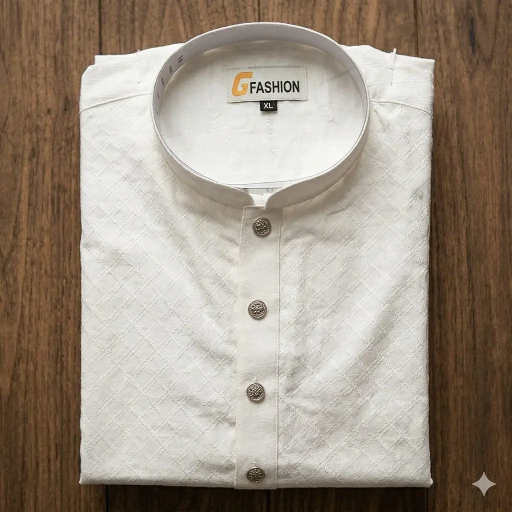 A timeless staple for every wardrobe. Our Classic White Panjabi by G Fashion is the perfect choice for Eid morning prayers and celebrations. Made with pure cotton, it ensures you stay cool and comfortable throughout the day while maintaining a crisp, smart appearance.